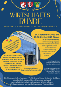 Liste aller Neumarkter Unternehmen, die an der Wirtschaftsrunde in Blindenmarkt teilgenommen haben. Stand per September 2025 Download: Aktuelle Betriebe-Liste für Neumarkt - Intensive Vernetzung der „Wirtschaftsrunde“ in Blindenmarkt